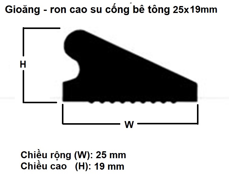 Gioăng cao su cống bê tông chữ A hay chữ V 25x14mm và 25x19mm được sử dụng rộng dãi trong công trình đường ống cấp thoát nước, được lắp ở điểm nối của 2 đường ống, có tính năng ngăn nước. Phạm vi ứng dụng: ống xi măng, vòng cao su, ống nước thải, v.v.